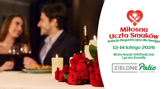 Walentynki 2026 w Zielonym Patio: kolacja degustacyjna dla dwojga (13–14 lutego)